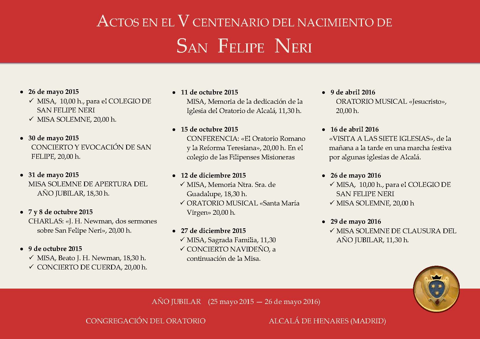 Actos para el V Centenario del nacimiento de San Felipe Neri